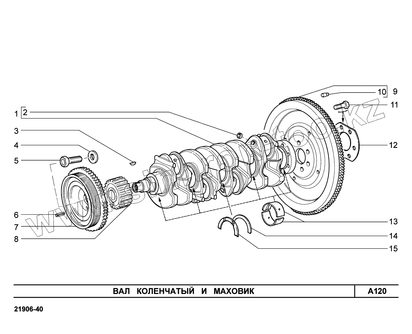 Каталог запасных частей к технике: ВАЗ LADA Granta 2190. A120. Вал коленчатый и маховик