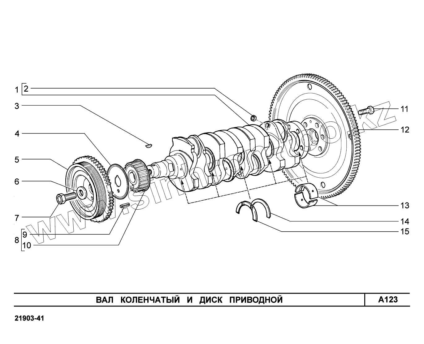 Каталог запасных частей к технике: ВАЗ LADA Granta 2190. A123. Вал коленчатый и диск приводной