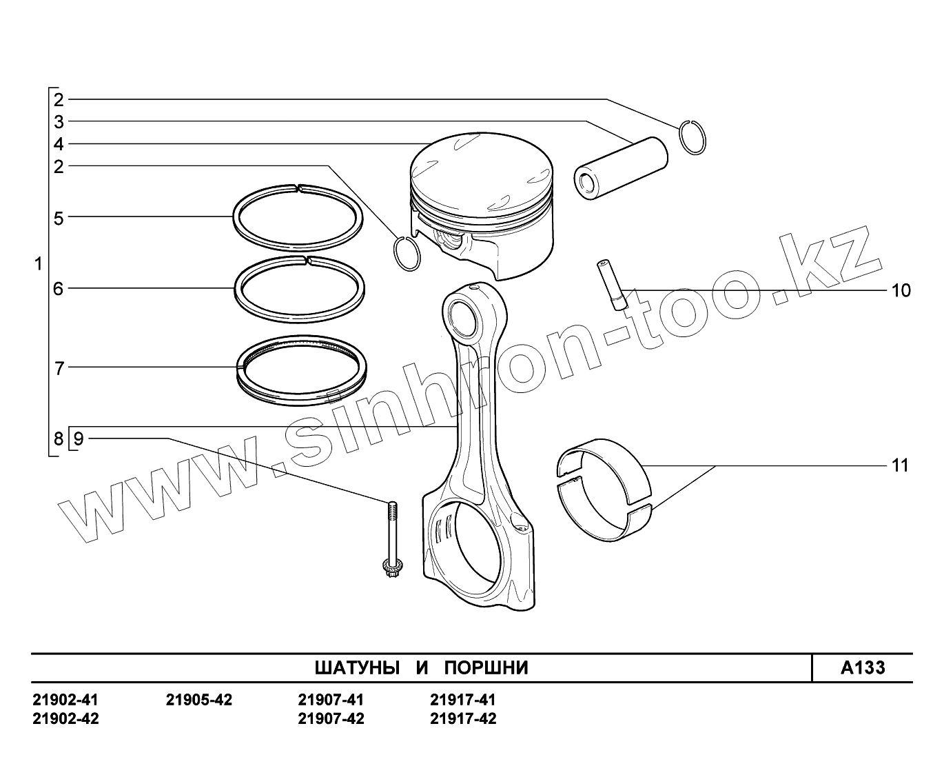 Каталог запасных частей к технике: ВАЗ LADA Granta 2190. A133. Шатуны и поршни