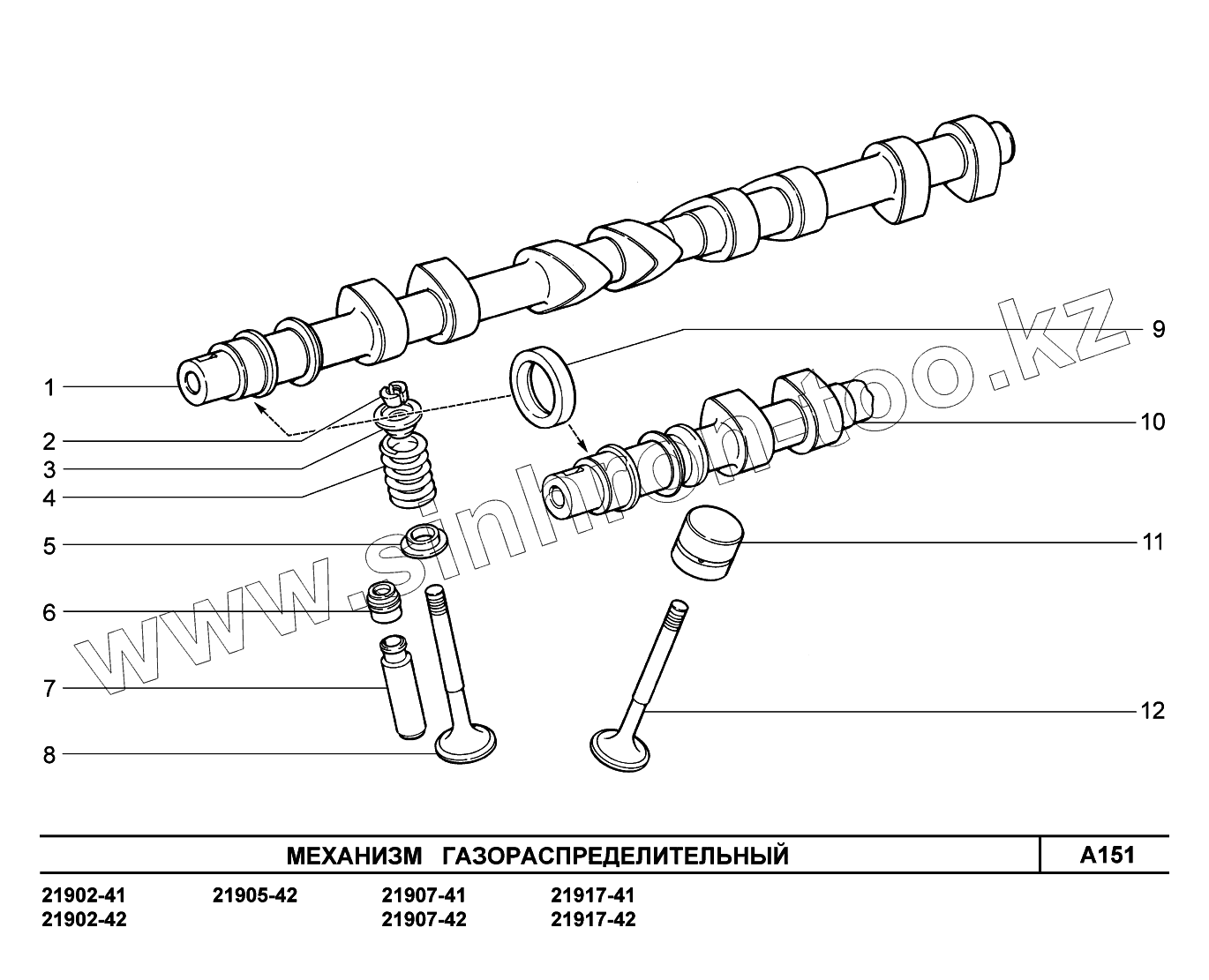 Каталог запасных частей к технике: ВАЗ LADA Granta 2190. A151. Механизм газораспределительный