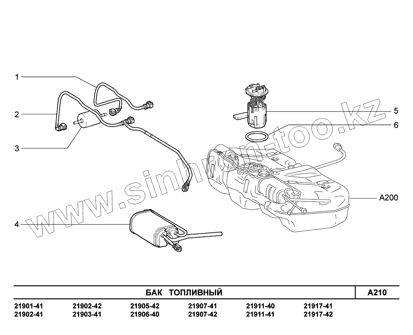 Каталог запасных частей к технике: ВАЗ LADA Granta 2190. A210. Бак топливный