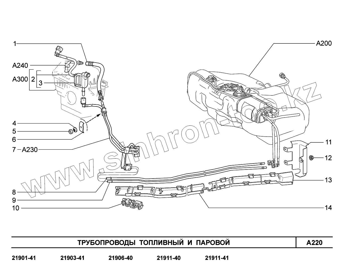 Каталог запасных частей к технике: ВАЗ LADA Granta 2190. A220. Трубопроводы топливный и паровой