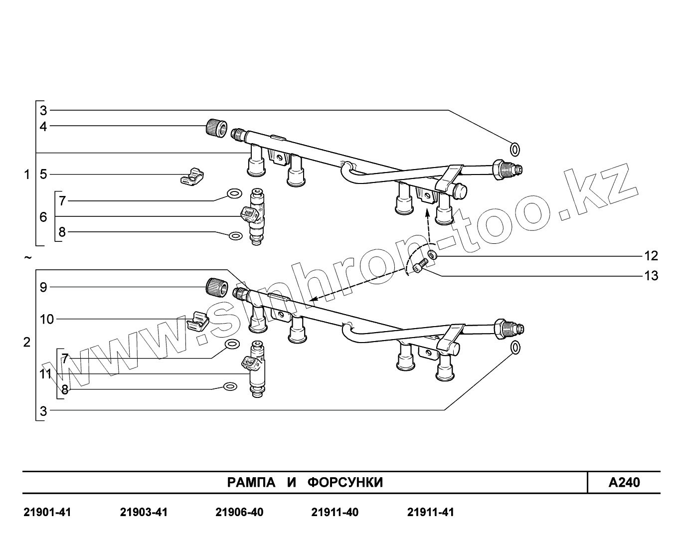 Каталог запасных частей к технике: ВАЗ LADA Granta 2190. A240. Рампа и форсунки