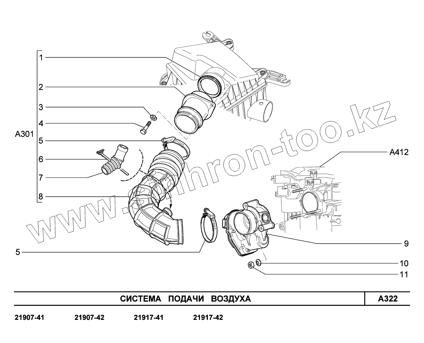 Каталог запасных частей к технике: ВАЗ LADA Granta 2190. A322. Система подачи воздуха