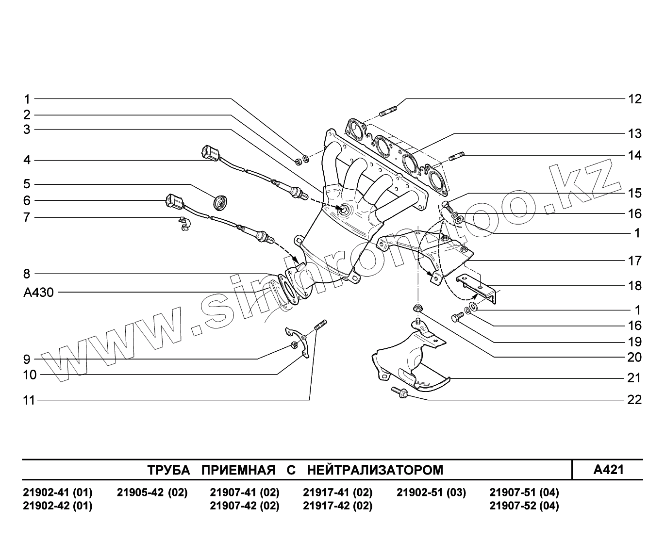 Каталог запасных частей к технике: ВАЗ LADA Granta 2190. A421. Труба приемная с нейтрализатором