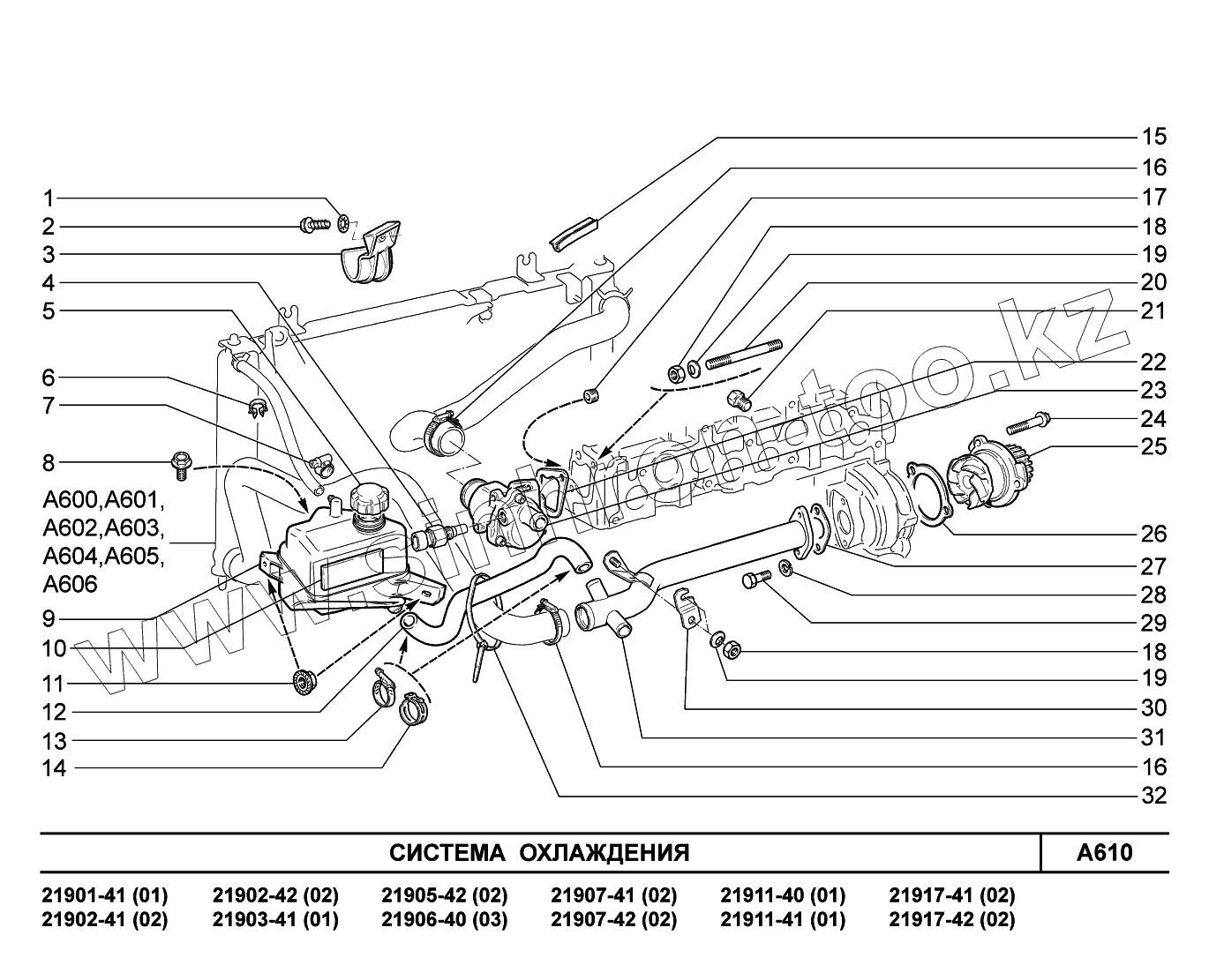 Каталог запасных частей к технике: ВАЗ LADA Granta 2190. A610. Система охлаждения