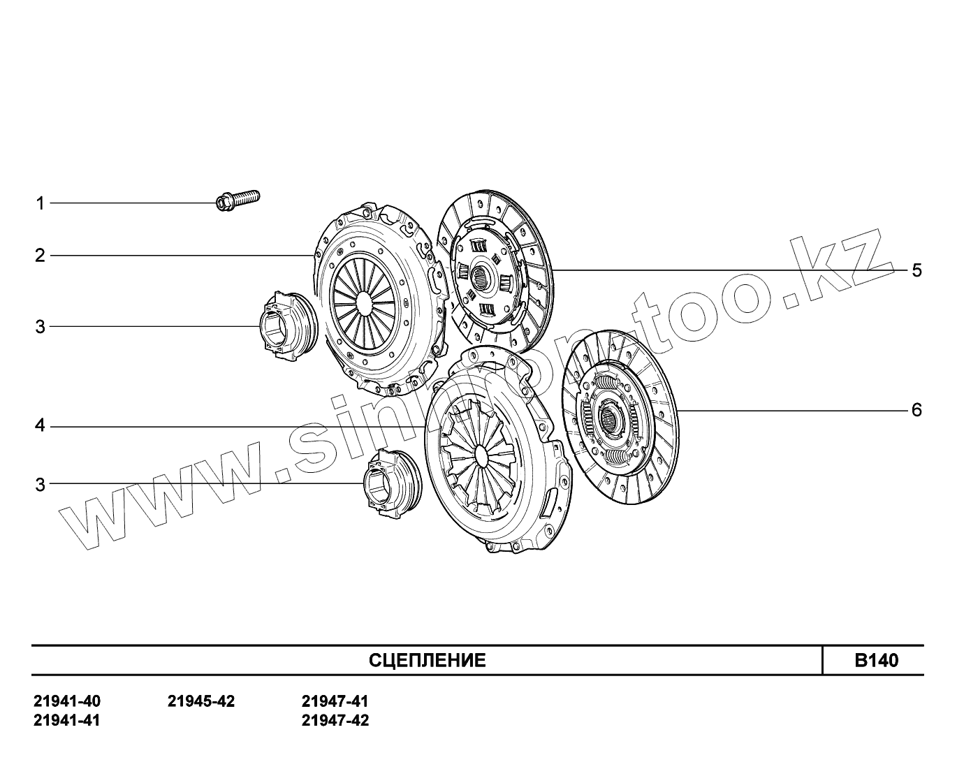 Каталог запасных частей к технике: ВАЗ LADA Granta 2190. B140. Сцепление