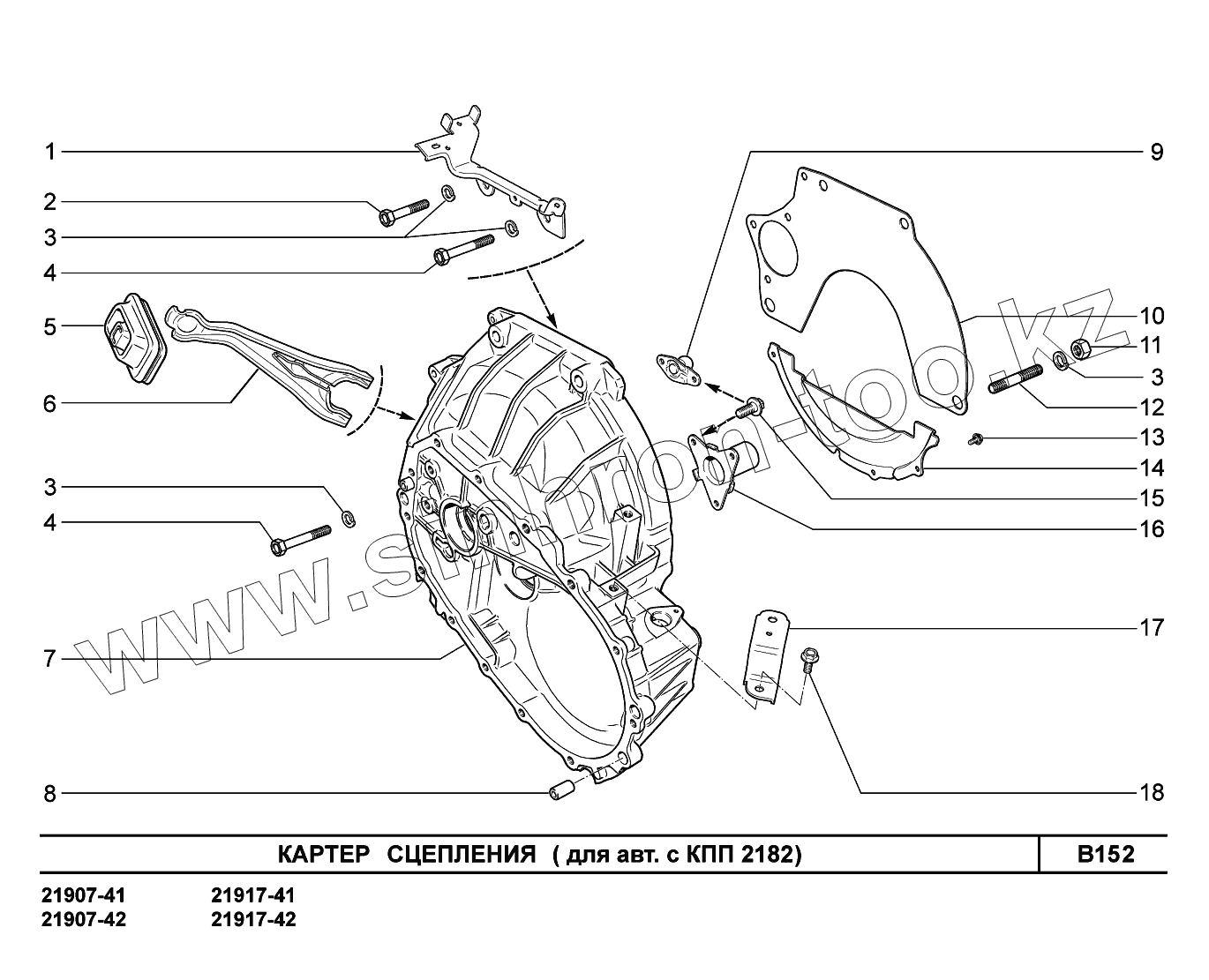 Каталог запасных частей к технике: ВАЗ LADA Granta 2190. B152. Картер сцепления