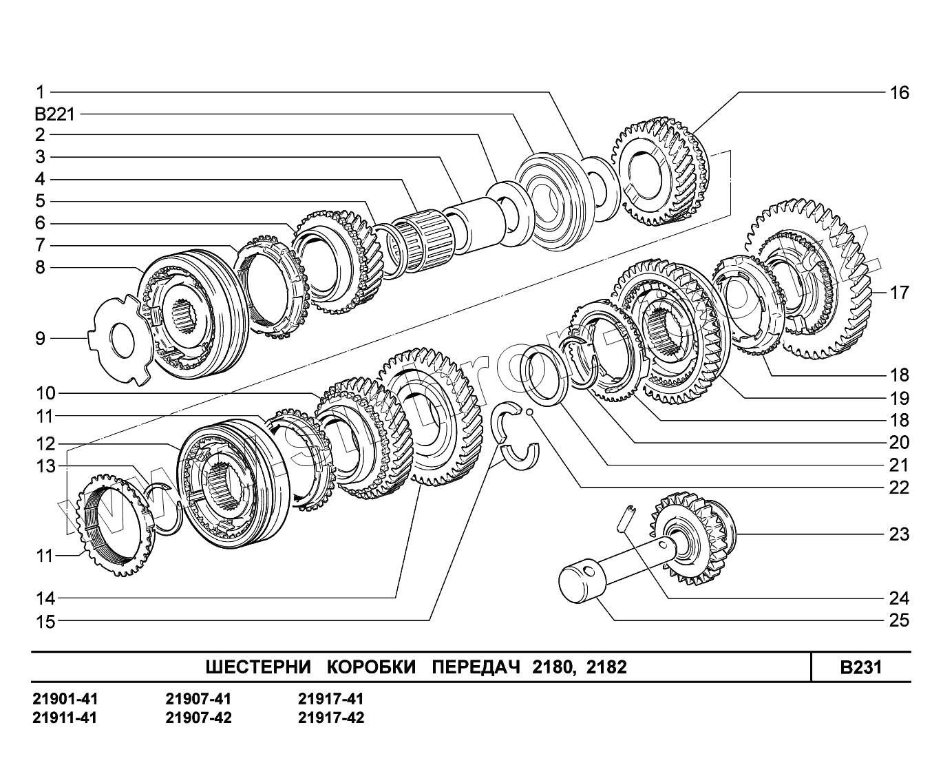 Каталог запасных частей к технике: ВАЗ LADA Granta 2190. B231. Шестерни коробки передач
