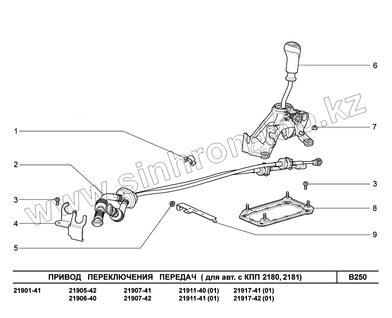 Каталог запасных частей к технике: ВАЗ LADA Granta 2190. B250. Привод переключения передач