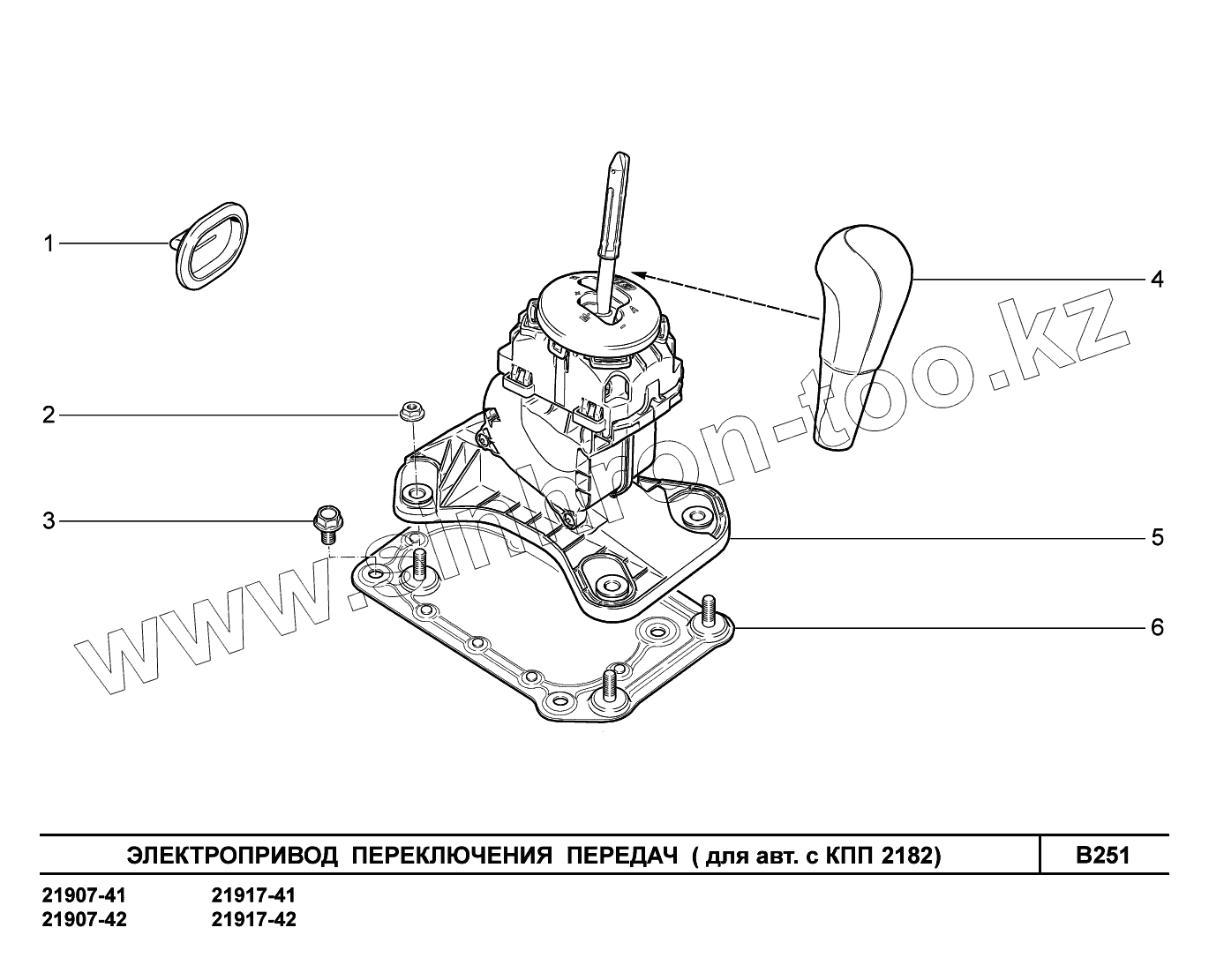 Каталог запасных частей к технике: ВАЗ LADA Granta 2190. B251. Электропривод переключения передач