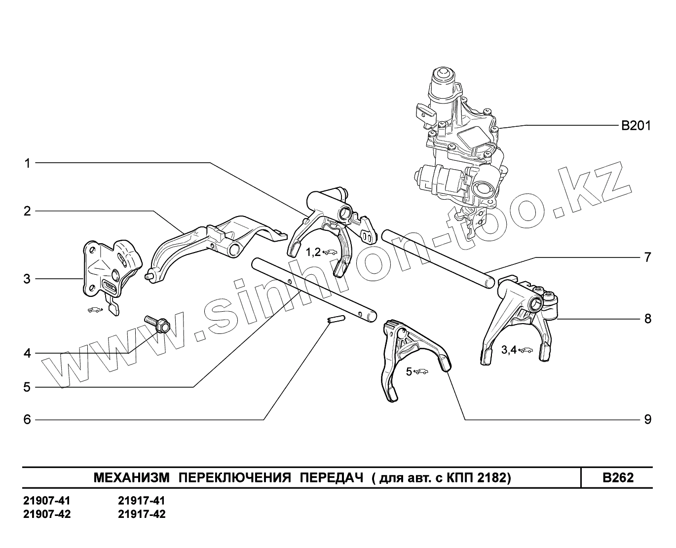 Каталог запасных частей к технике: ВАЗ LADA Granta 2190. B262. Механизм переключения передач