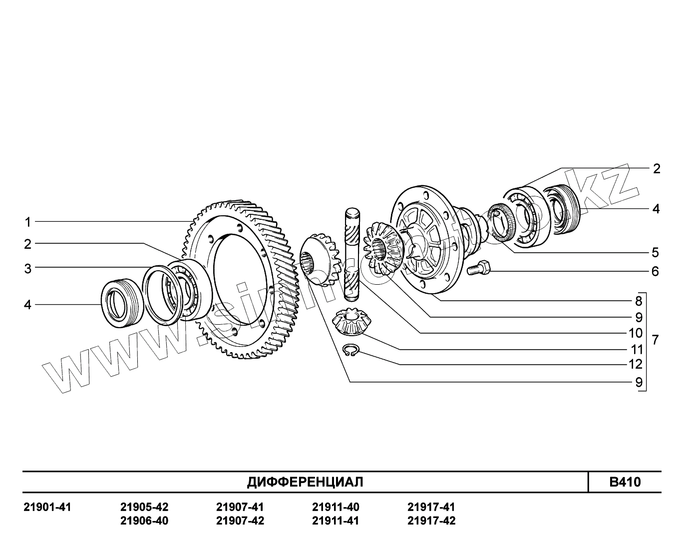 Каталог запасных частей к технике: ВАЗ LADA Granta 2190. B410. Дифференциал