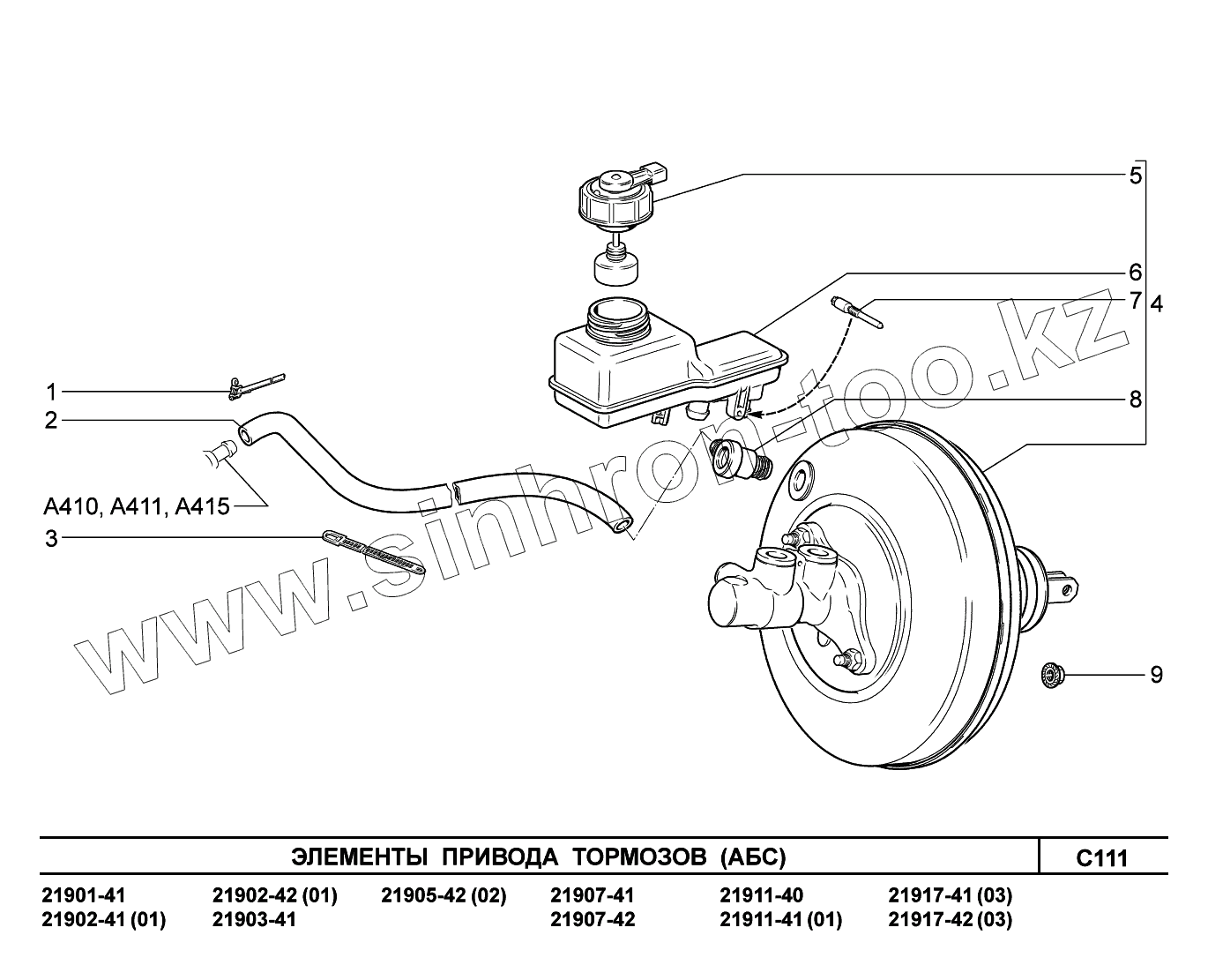 C111. Элементы привода тормозов