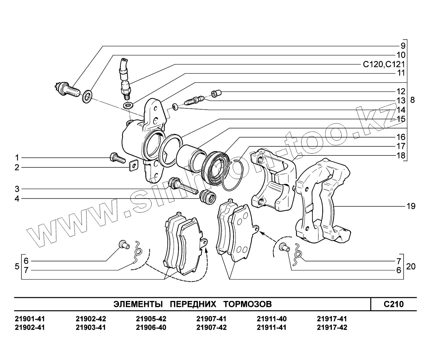 C210. Элементы передних тормозов