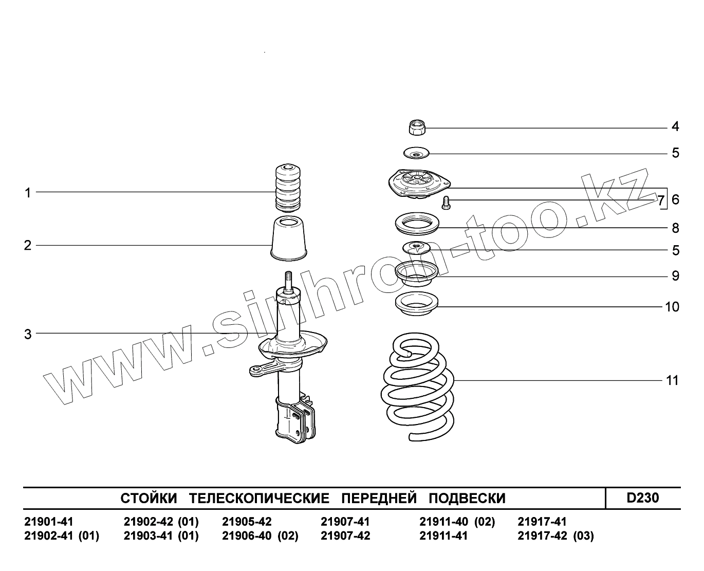 Каталог запасных частей к технике: ВАЗ LADA Granta 2190. D230. Стойки телескопические передней подвески
