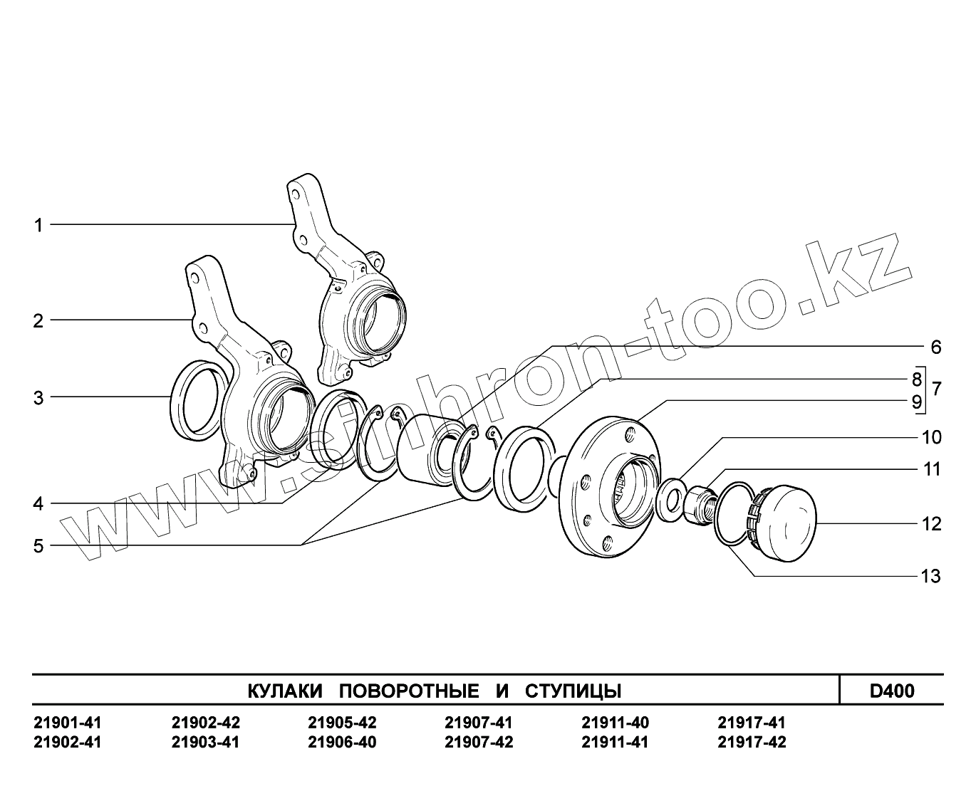 D400. Кулаки поворотные и ступицы