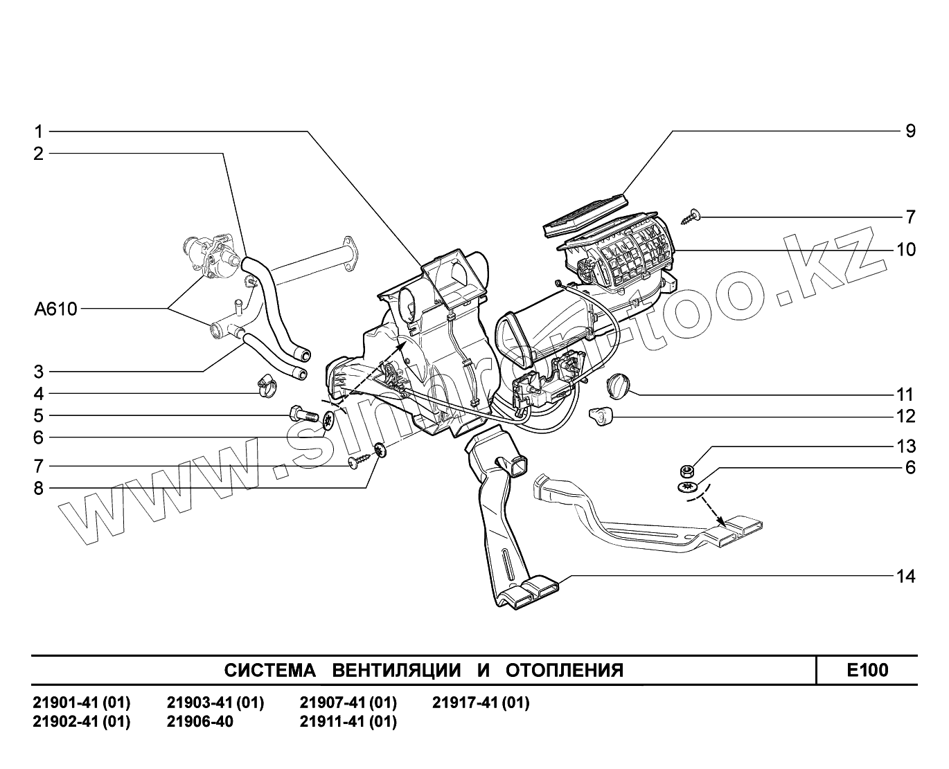 Каталог запасных частей к технике: ВАЗ LADA Granta 2190. E100. Система вентиляции и отопления