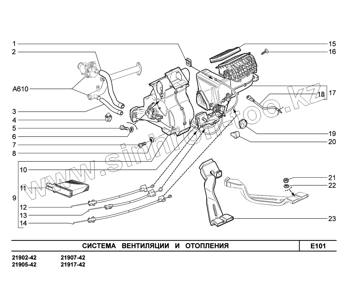 Каталог запасных частей к технике: ВАЗ LADA Granta 2190. E101. Система вентиляции и отопления