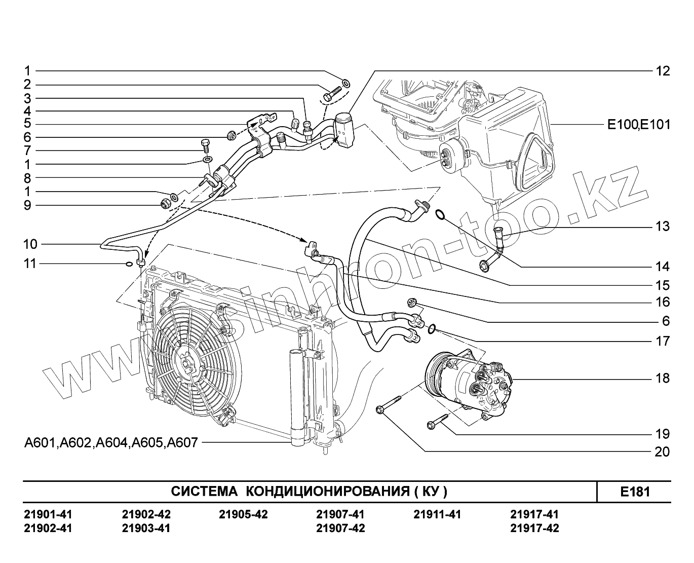 Каталог запасных частей к технике: ВАЗ LADA Granta 2190. E181. Система кондиционирования