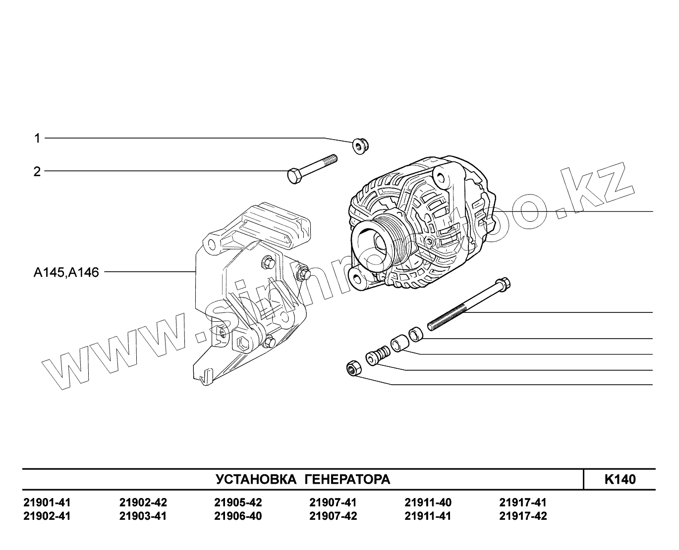 Каталог запасных частей к технике: ВАЗ LADA Granta 2190. K140. Установка генератора