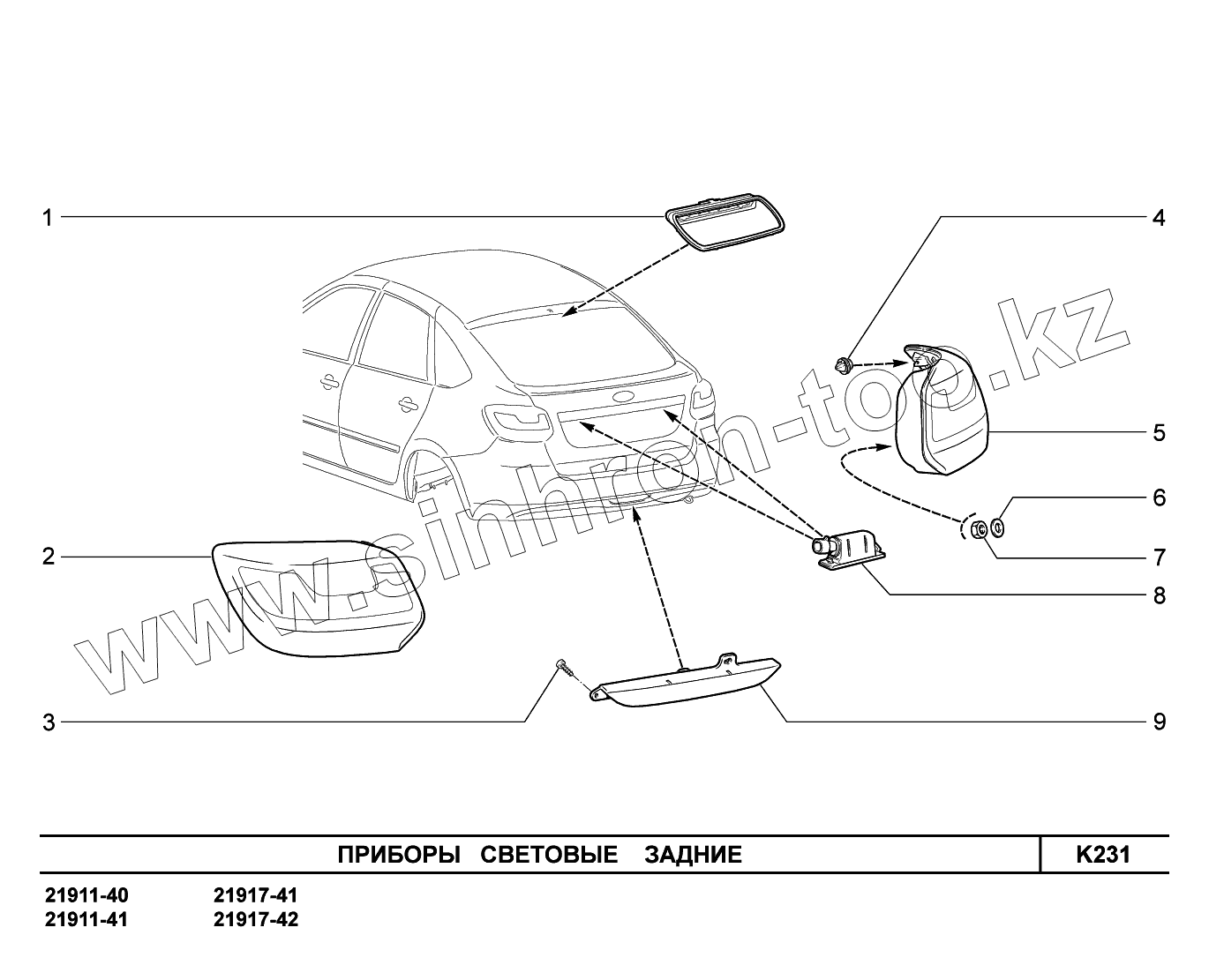 Каталог запасных частей к технике: ВАЗ LADA Granta 2190. K231. Приборы световые задние
