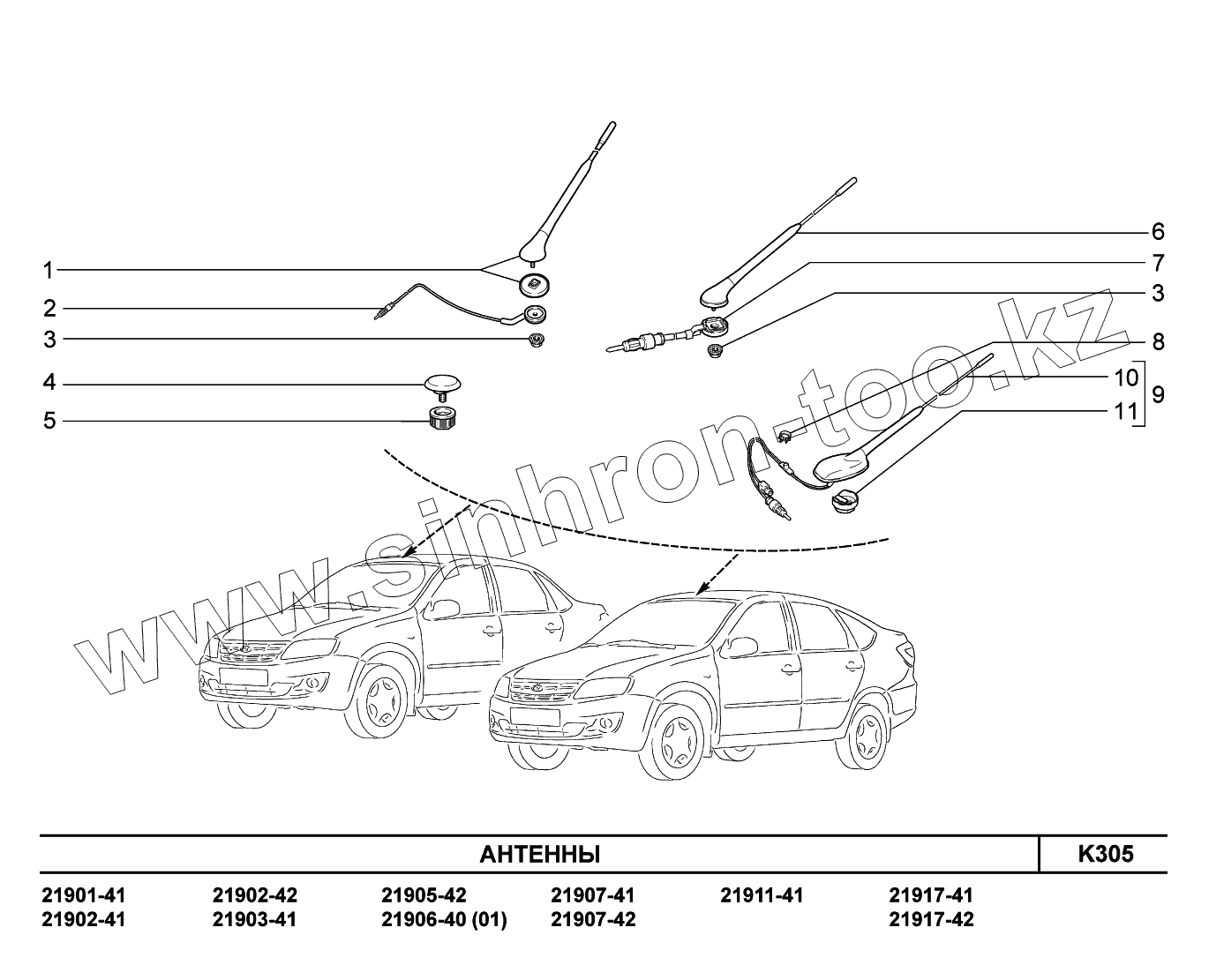 Каталог запасных частей к технике: ВАЗ LADA Granta 2190. K305. Антенны