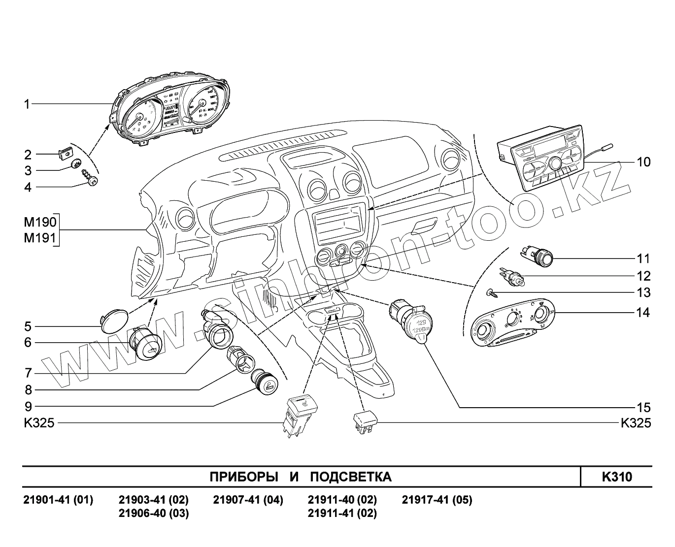 Каталог запасных частей к технике: ВАЗ LADA Granta 2190. K310. Приборы и подсветка