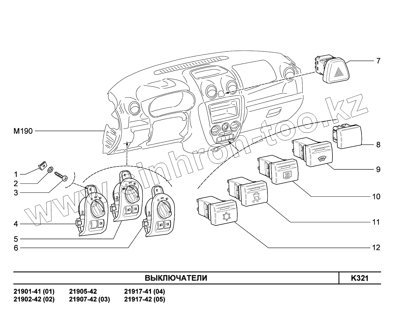 Каталог запасных частей к технике: ВАЗ LADA Granta 2190. K321. Выключатели
