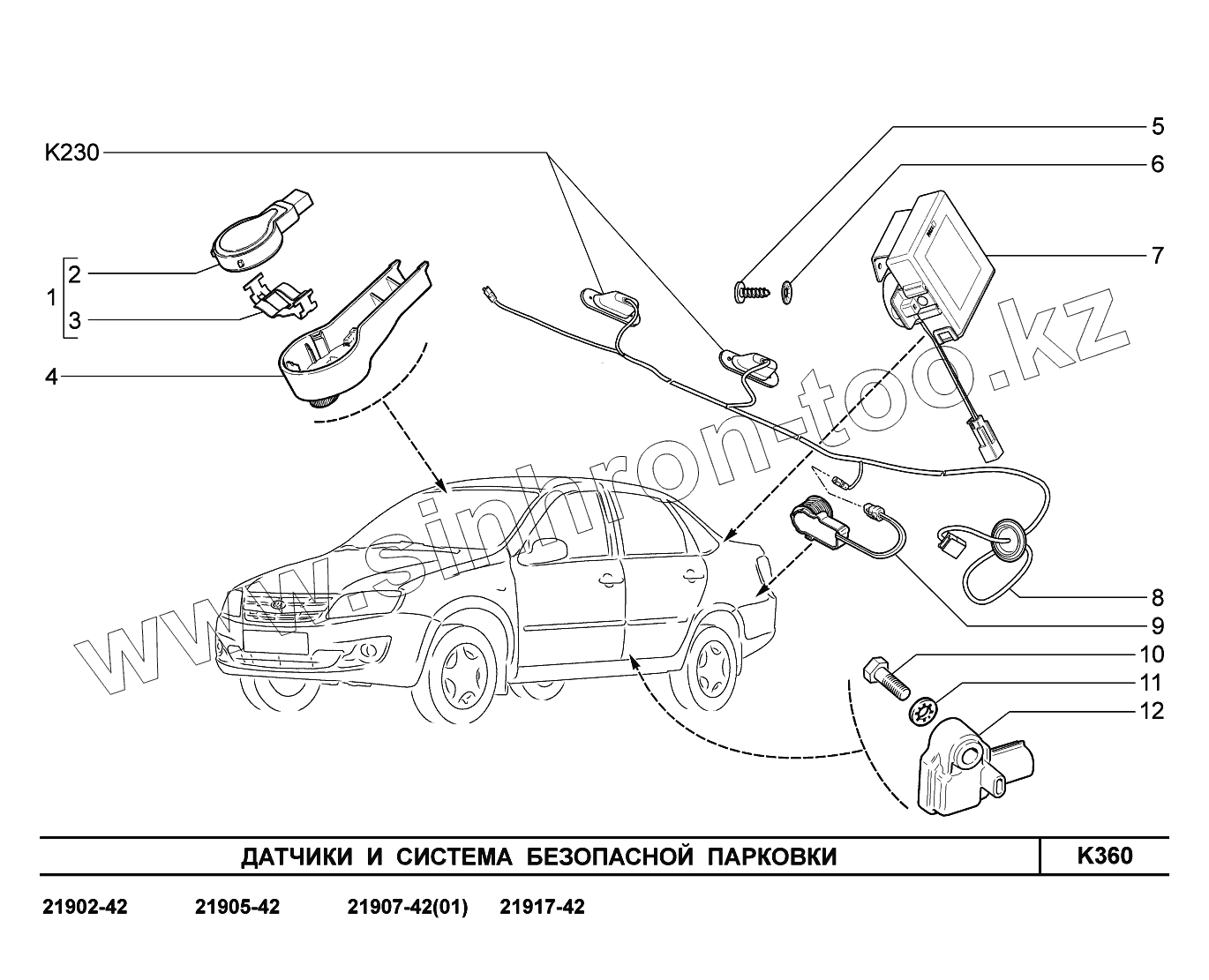 Каталог запасных частей к технике: ВАЗ LADA Granta 2190. K360. Датчики и система безопасной парковки