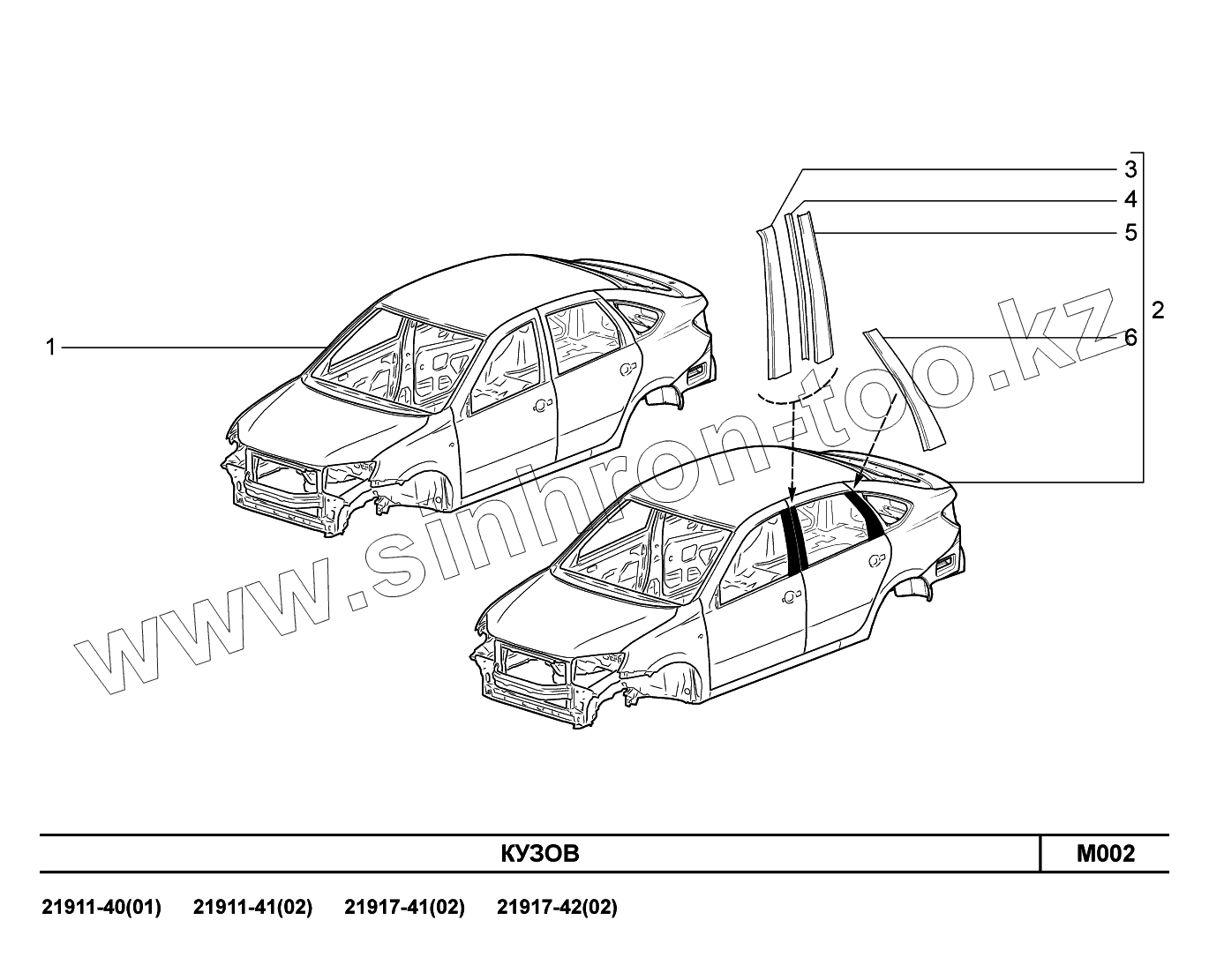 Каталог запасных частей к технике: ВАЗ LADA Granta 2190. M002. Кузов