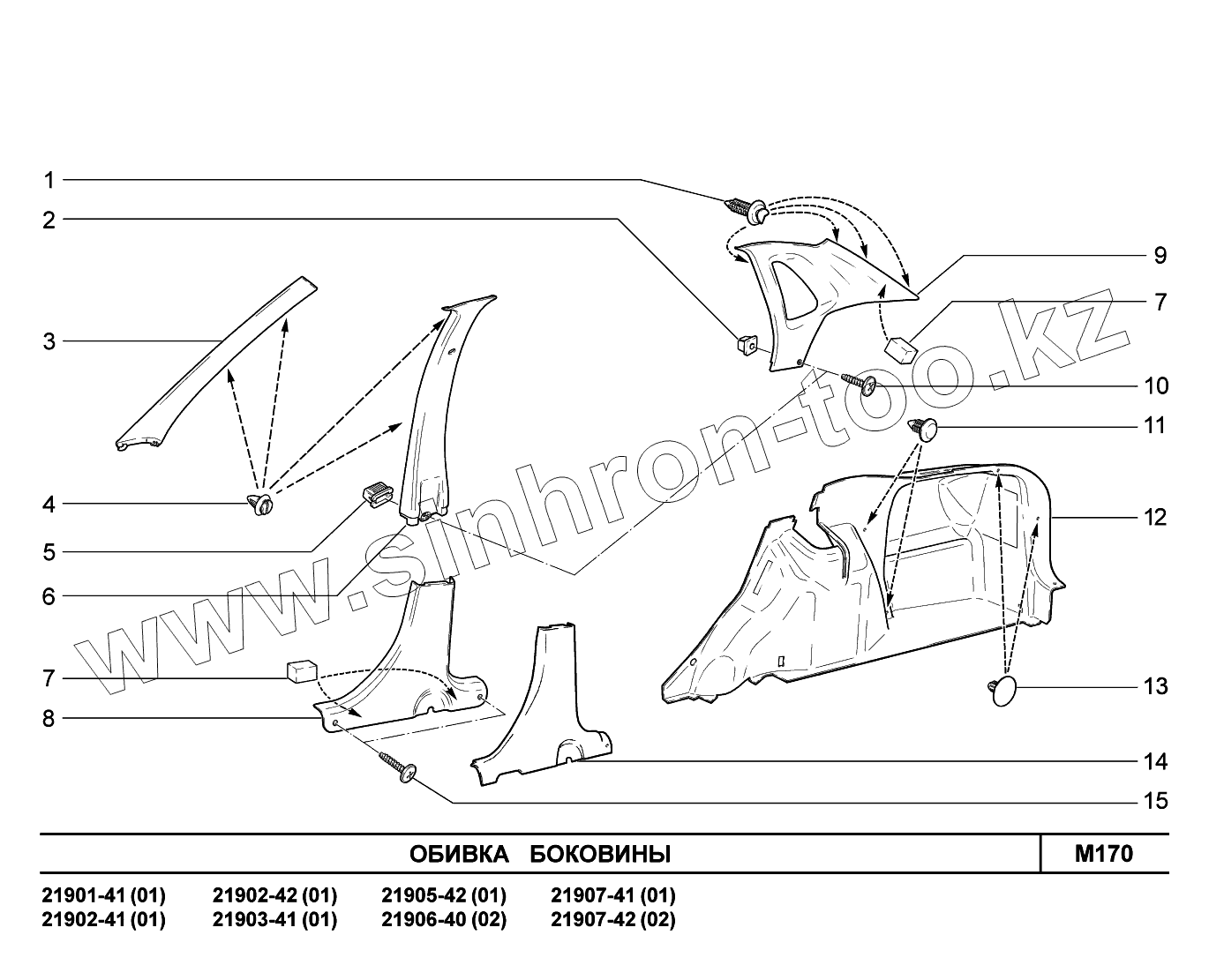 Каталог запасных частей к технике: ВАЗ LADA Granta 2190. M170. Обивка боковины