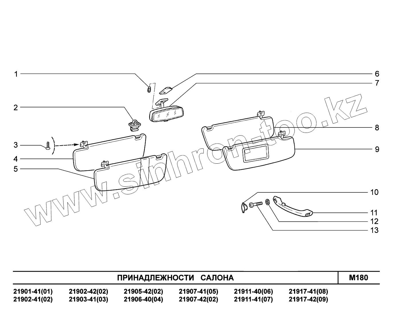 Каталог запасных частей к технике: ВАЗ LADA Granta 2190. M180. Принадлежности салона
