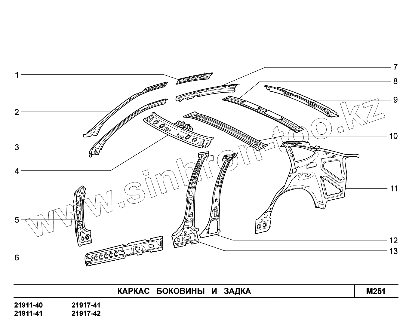 Каталог запасных частей к технике: ВАЗ LADA Granta 2190. M251. Каркас боковины и задка