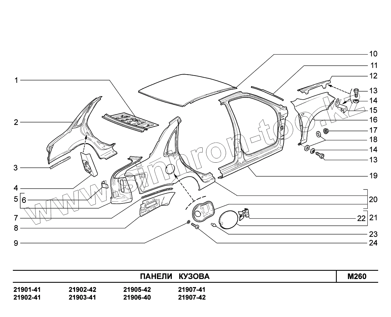 Каталог запасных частей к технике: ВАЗ LADA Granta 2190. M260. Панели кузова