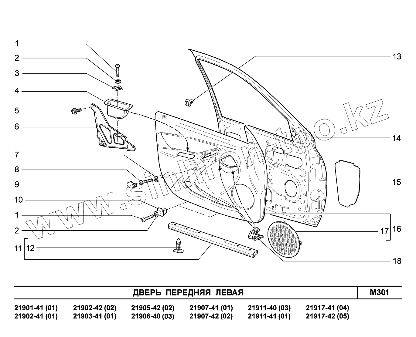 Каталог запасных частей к технике: ВАЗ LADA Granta 2190. M301. Дверь передняя левая