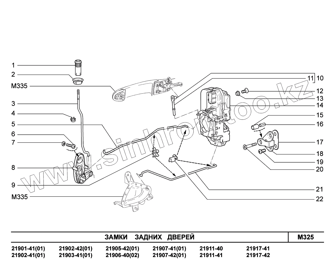 Каталог запасных частей к технике: ВАЗ LADA Granta 2190. M325. Замки задних дверей