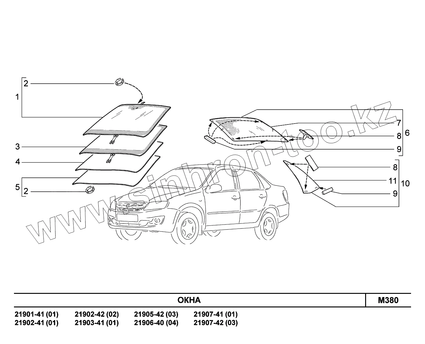 Каталог запасных частей к технике: ВАЗ LADA Granta 2190. M380. Окна