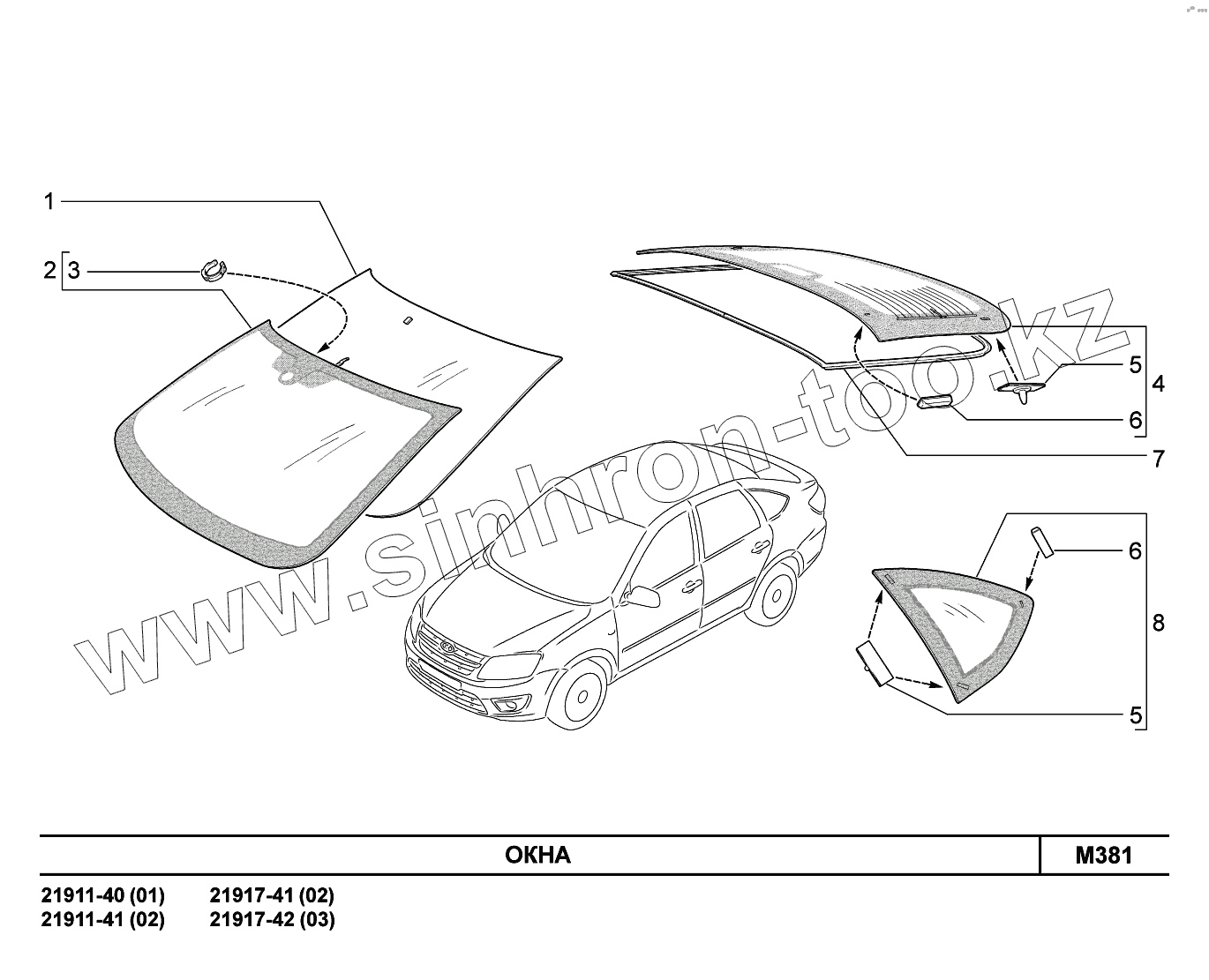 Каталог запасных частей к технике: ВАЗ LADA Granta 2190. M381. Окна