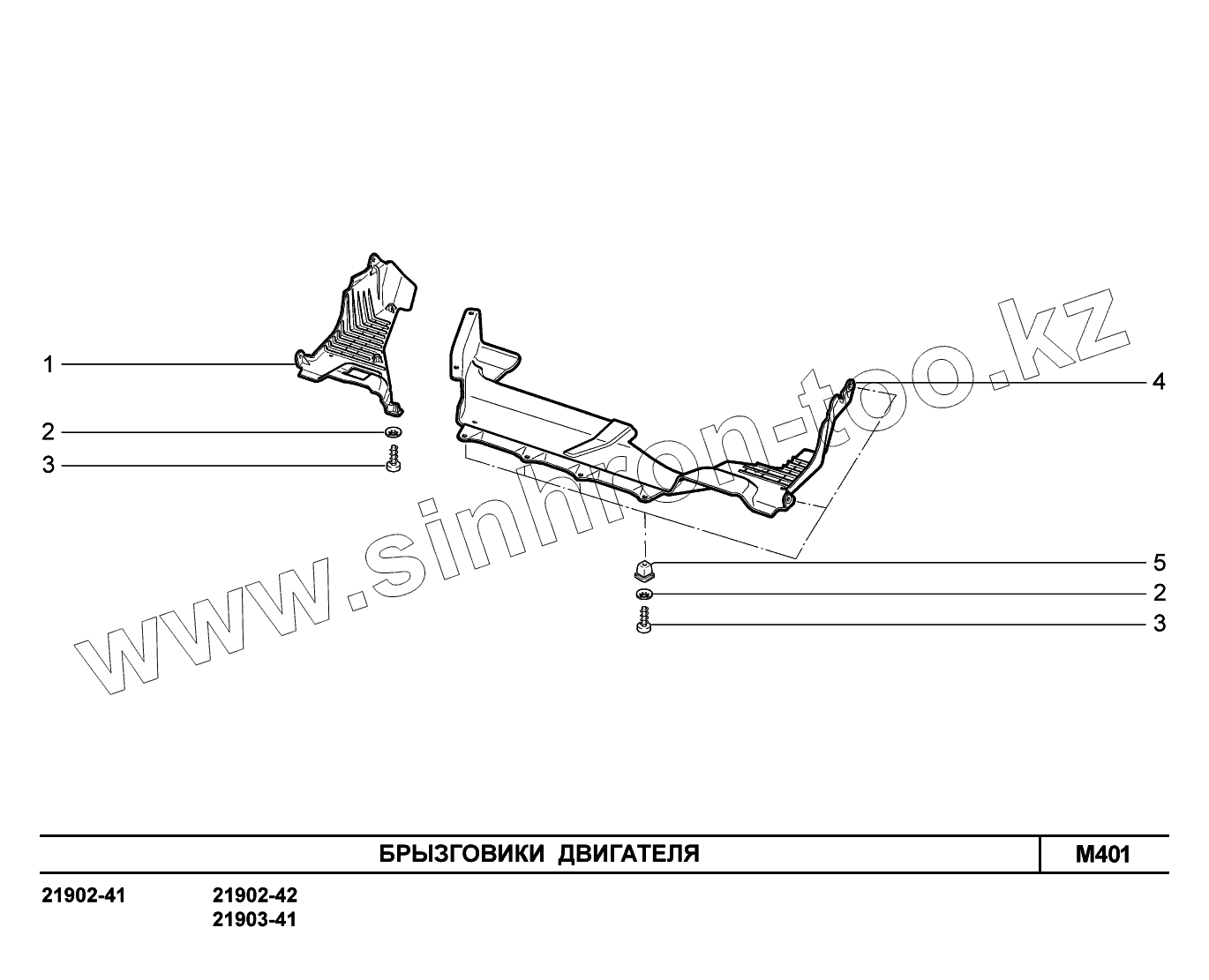 Каталог запасных частей к технике: ВАЗ LADA Granta 2190. M401. Брызговики двигателя