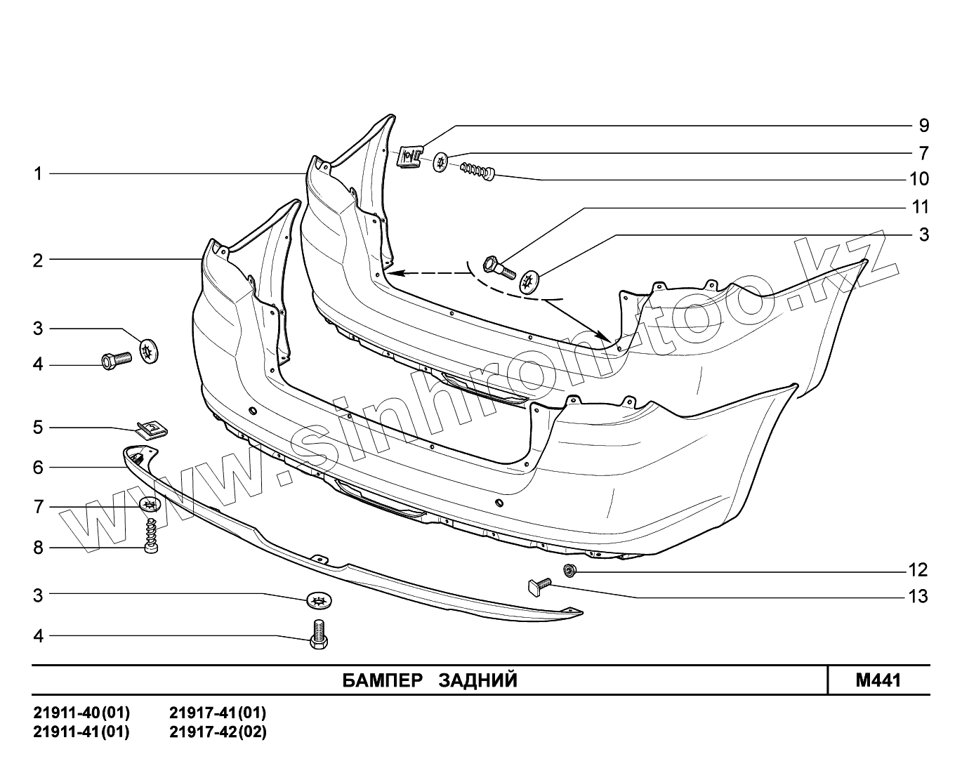 Каталог запасных частей к технике: ВАЗ LADA Granta 2190. M441. Бампер задний