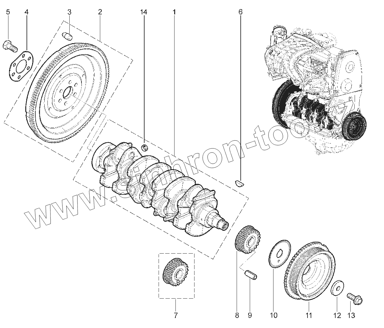 106010. КОЛЕНВАЛ, МАХОВИК, ШАТУН