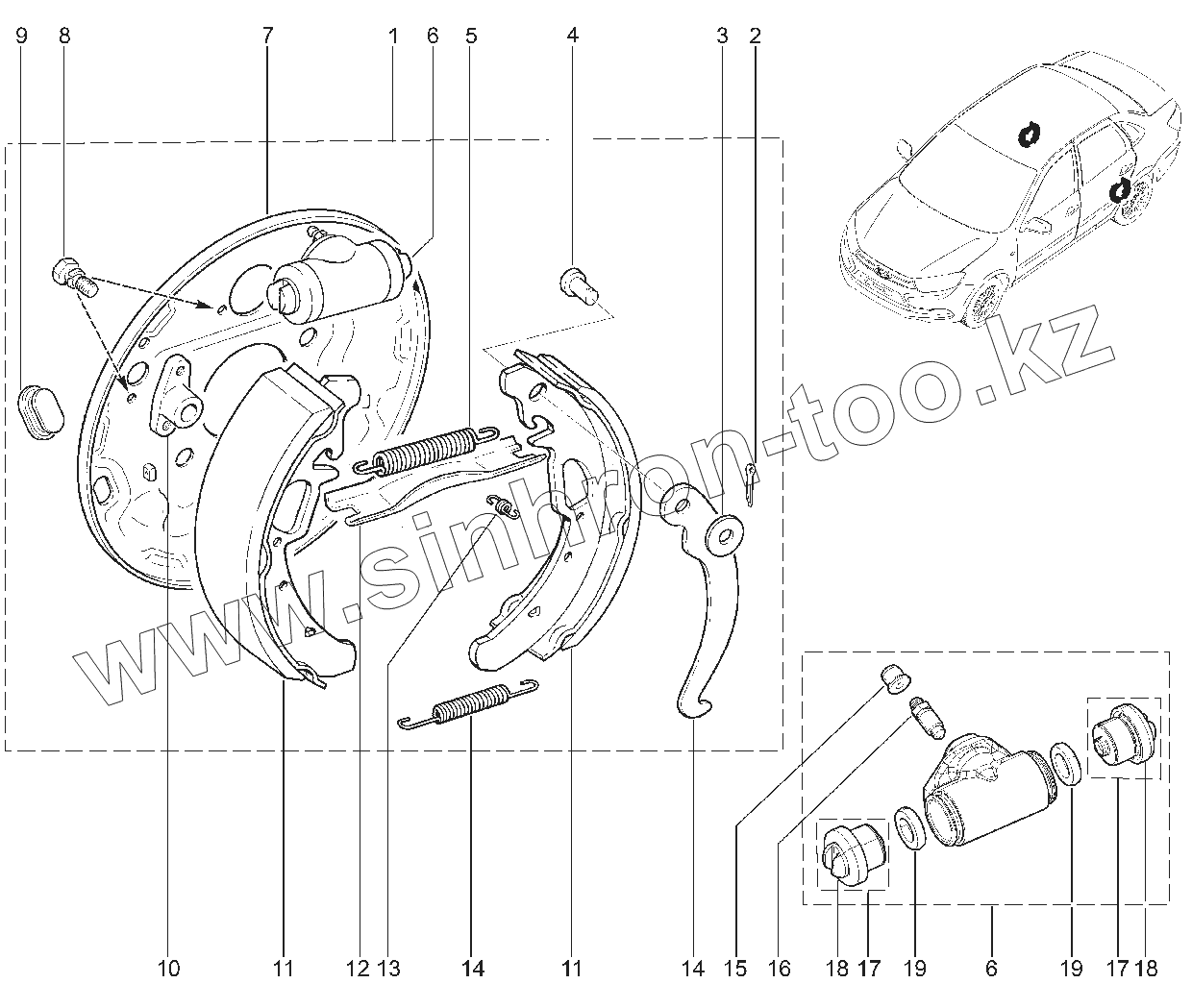 Каталог запасных частей к технике: ВАЗ LADA Granta 2190. 335010. КОМПЛЕКТЫ ЗАДНИХ ТОРМОЗОВ