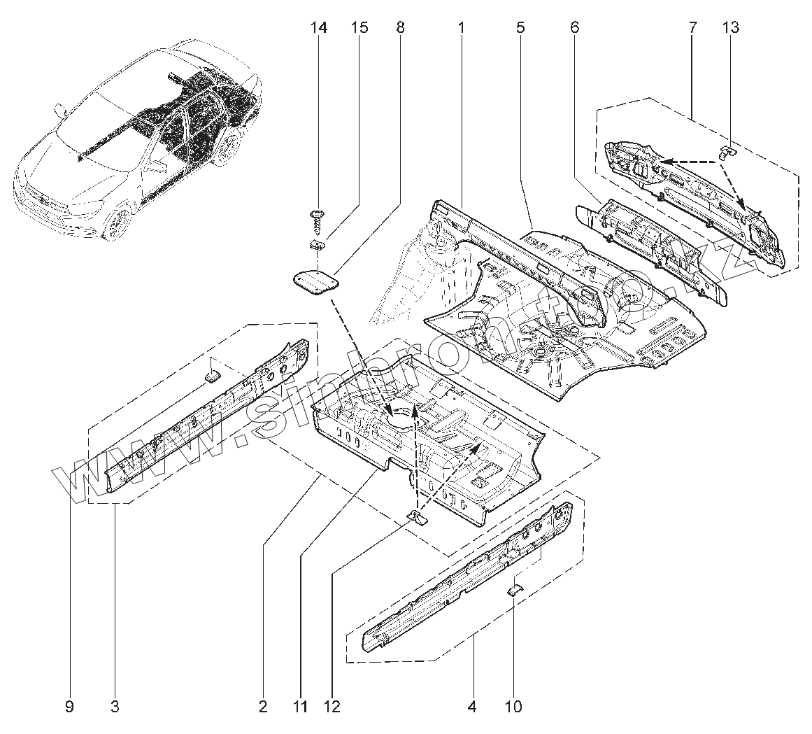 Каталог запасных частей к технике: ВАЗ LADA Granta 2190. 414110. ЭЛЕМЕНТЫ НИЖНИЕ ЗАДНИЕ