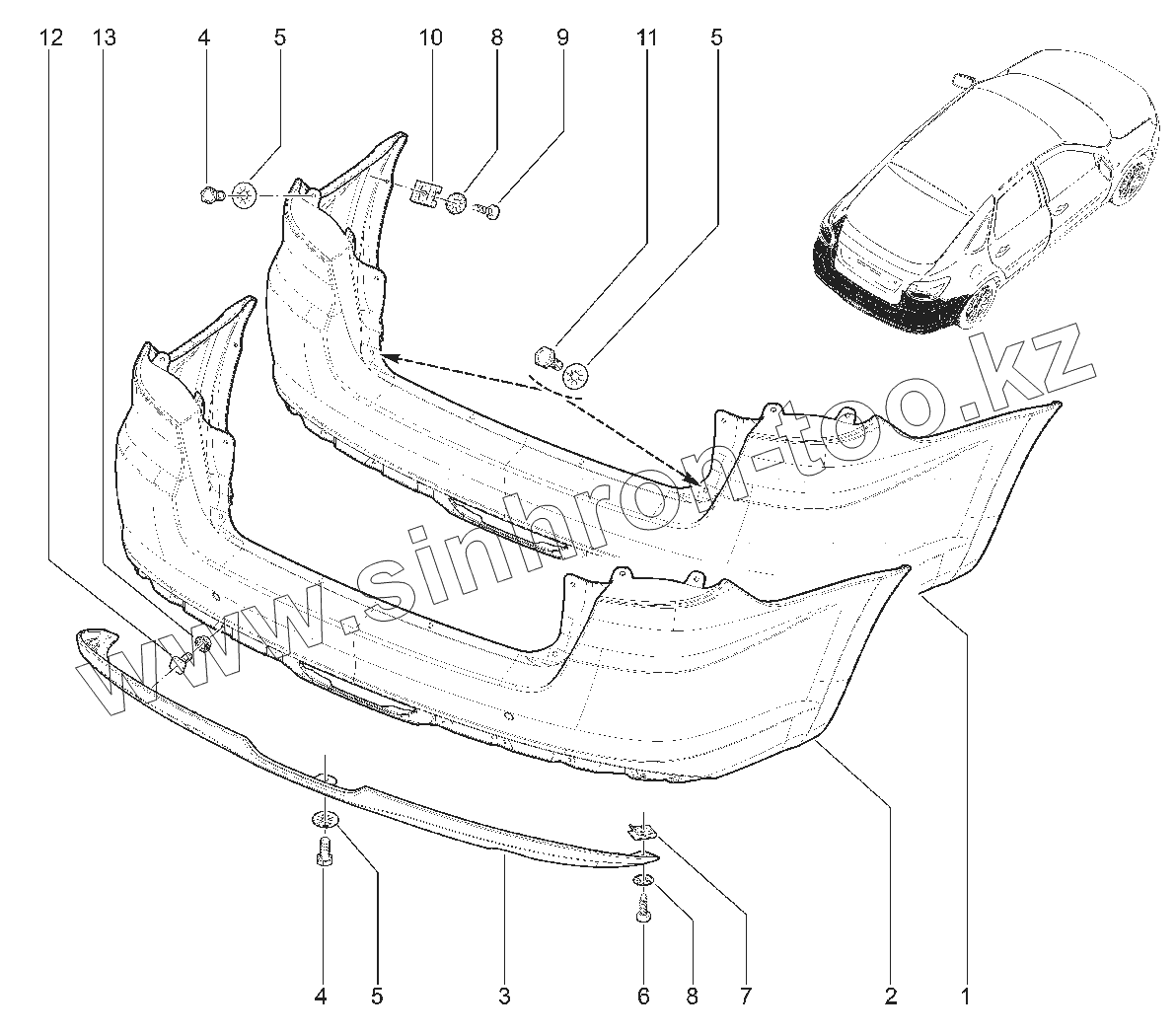 Каталог запасных частей к технике: ВАЗ LADA Granta 2190. 551011. БАМПЕР ЗАДНИЙ