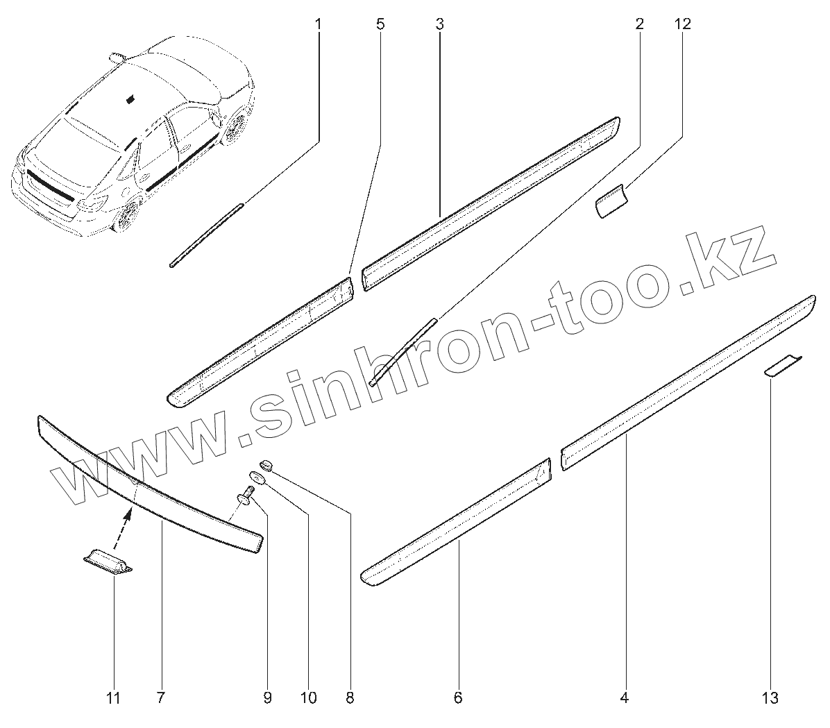Каталог запасных частей к технике: ВАЗ LADA Granta 2190. 552010. МОЛДИНГИ ДВЕРЕЙ