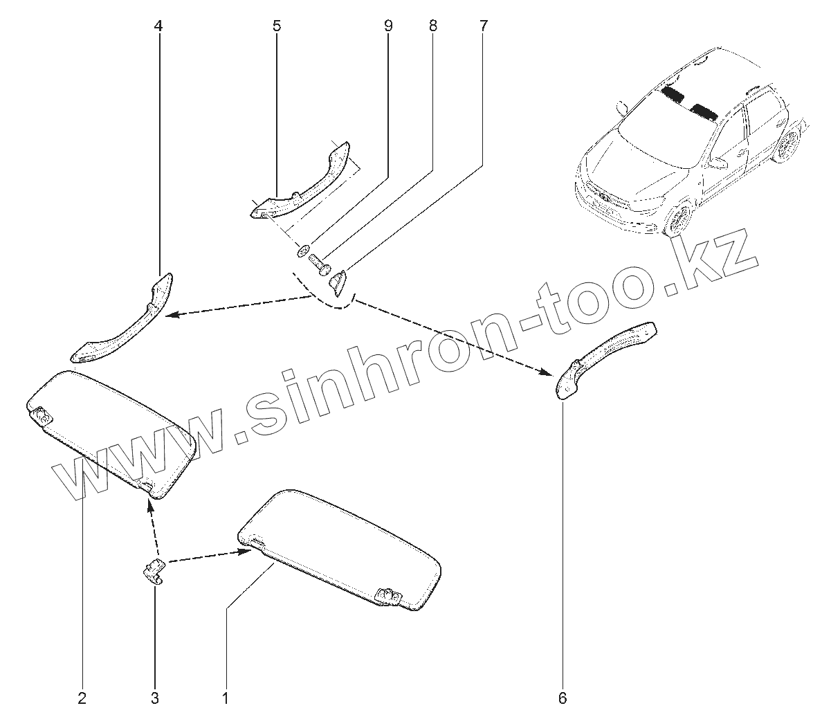 Каталог запасных частей к технике: ВАЗ LADA Granta 2190. 584011. ПОРУЧНИ. КОЗЫРЬКИ, КРЮЧКИ