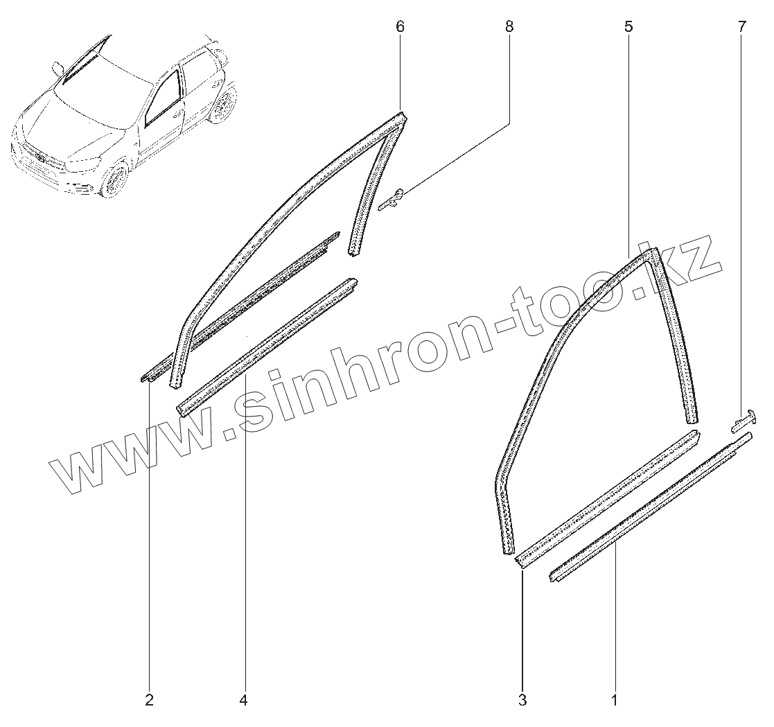Каталог запасных частей к технике: ВАЗ LADA Granta 2190. 660110. УПЛОТНИТЕЛИ СТЕКОЛ