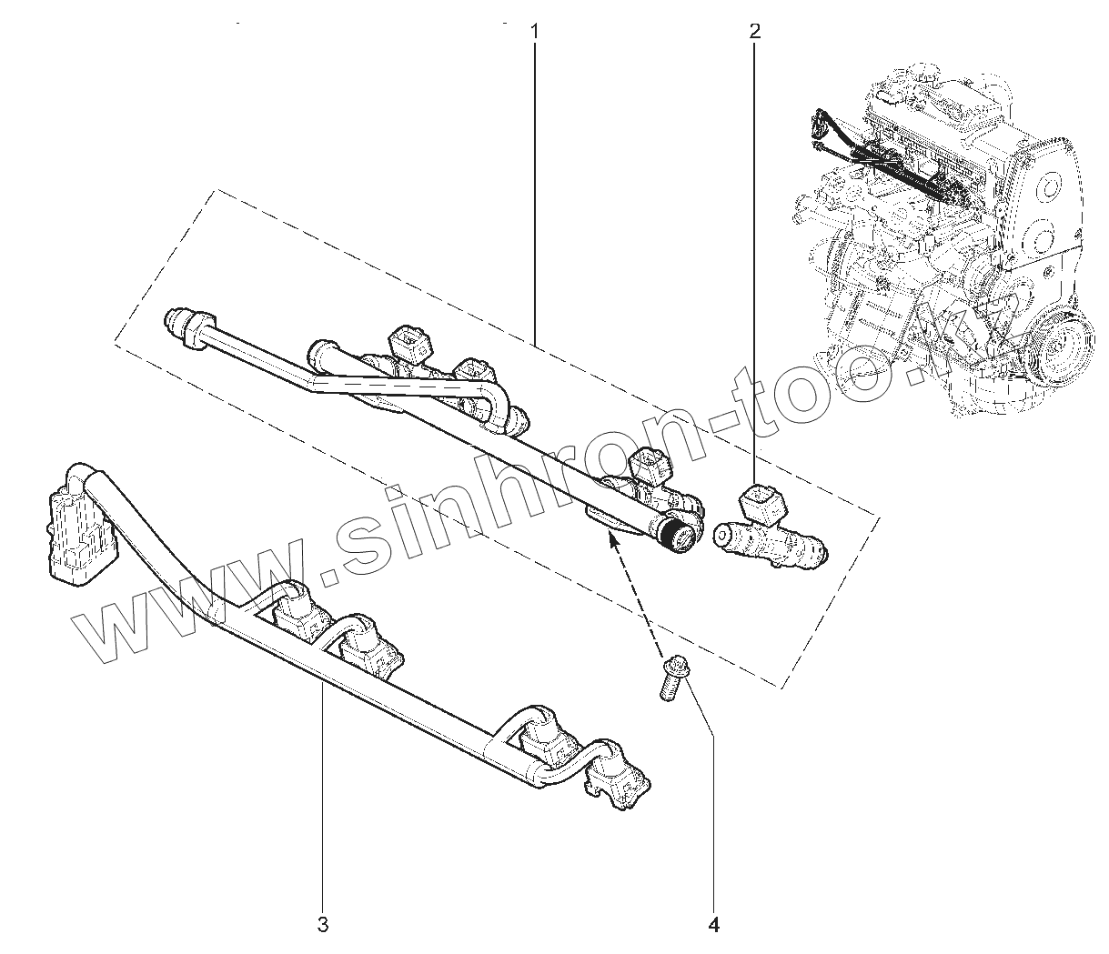 Каталог запасных частей к технике: ВАЗ LADA Granta 2191(Liftback). 125010. РАМПА ТОПЛИВНАЯ