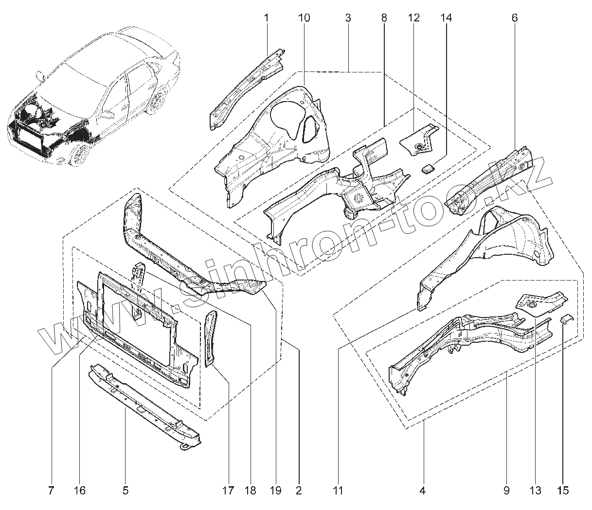Каталог запасных частей к технике: ВАЗ LADA Granta 2191(Liftback). 411010. ЭЛЕМЕНТЫ НИЖНИЕ ПЕРЕДНИЕ